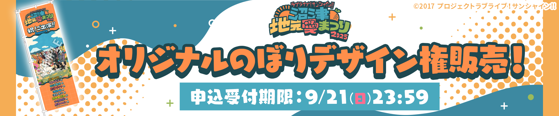 「ラブライブ!サンシャイン!! 沼津地元愛まつり 2025」のオリジナルのぼりデザイン権の受付は終了いたしました。
